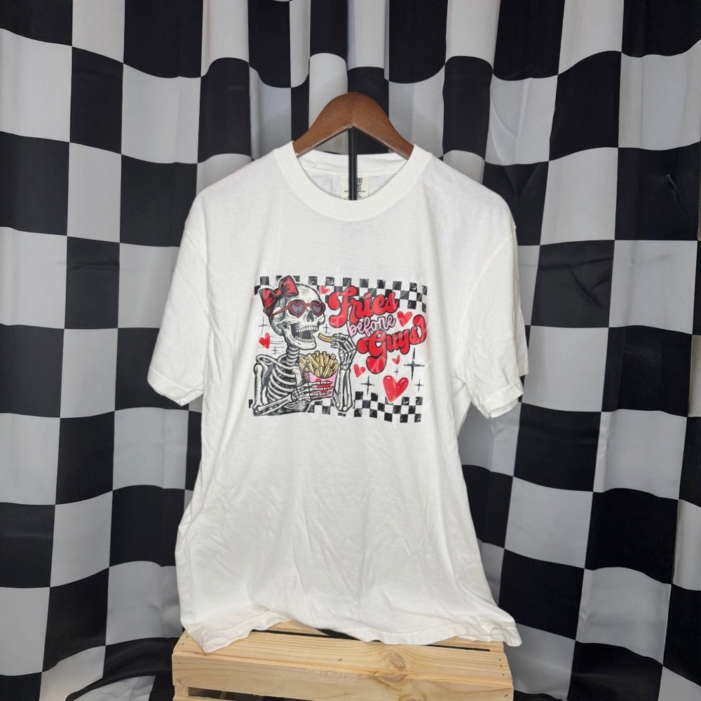 The Fries Before Guys Shirt is the cheeky Valentine’s Day tee that puts crispy fries first—and your sense of humor second. Whether you’re happily single or just love a good dipping sauce, this soft, comfortable tee makes a statement you’ll actually want to wear again.